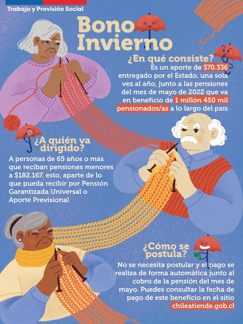 A nivel nacional se estima que el Bono Invierno llegará a más de 1 millón 500 mil pensionados, incluyendo el IPS y las otras instituciones de previsión. Mientras que para recibir el pago, debes dirigirte a la misma entidad que paga tu pensión y presentar tu cédula de identidad.