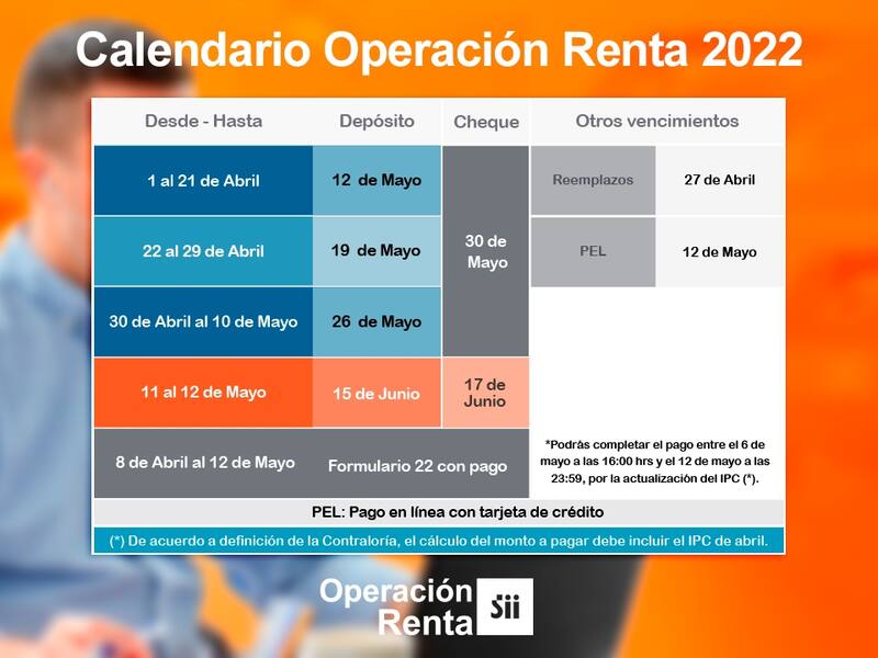 Mientras que quienes realicen este trámite durante el 11 y el 12 de mayo recibirán su pago a contar del 15 de junio y tendrán plazo para retirarlo hasta el 17 del mismo mes. Además, a contar de este día lo comenzarán a recibir quienes realizaron la operación renta entre el 12 y el 19 de mayo.