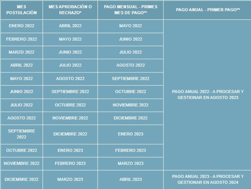 La iniciativa presenta dos opciones de pago, recibir el pago anual, el cual se entrega en agosto de cada año; u optar por los pagos mensuales, los que se otorgan a fines de cada mes.
