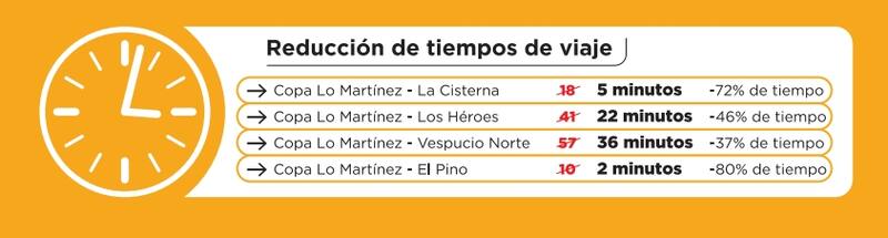Por su parte, el Ministerio de Transportes indicó que los tiempos de viaje se reducirá considerablemente para aquellas personas que se movilicen dentro San Bernardo, El Bosque y La Cisterna.
