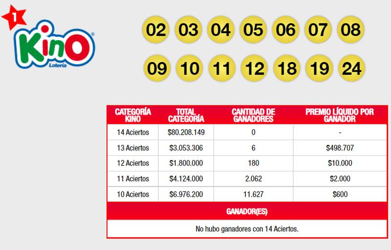 No se registró ningún ganador en la categoría de 14 aciertos del Kino, tampoco en ReKino, Chanchito Regalón, Combo Marraqueta y Chao Jefe.