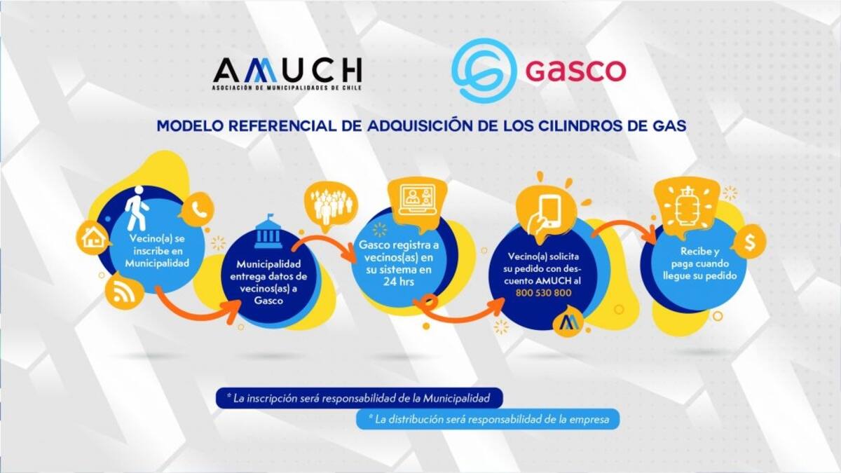 La Amuch realizó un convenio con Gasco para obtener 500.000 cargas con un 15% para este 2022, las que serán entregadas a vecinos pertenecientes a las 78 comunas de esa asociación, los que pueden postular realizando los siguientes pasos: