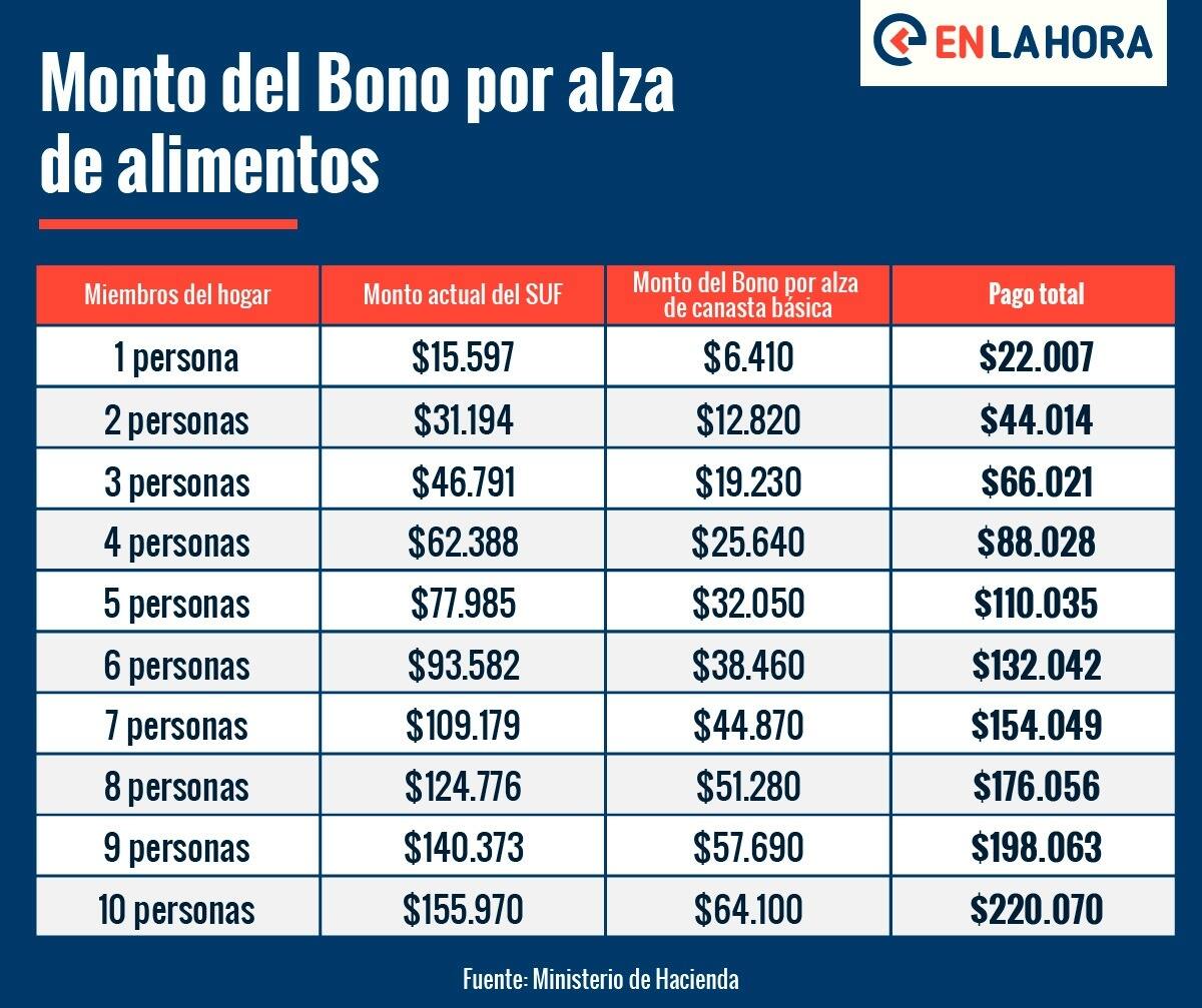 Con el reajuste al sueldo mínimo, el Subsidio Único Familiar aumentará su monto desde $14.366 a $15.597 por carga familiar (siendo este monto el doble si alguno de los causantes posee alguna discapacidad física o cognitiva, es decir, $31.194). Sumado a esto, se añadirá el Bono Canasta Básica Familiar. Por lo tanto, una familia de 5 personas recibirá un total de $110.035.
