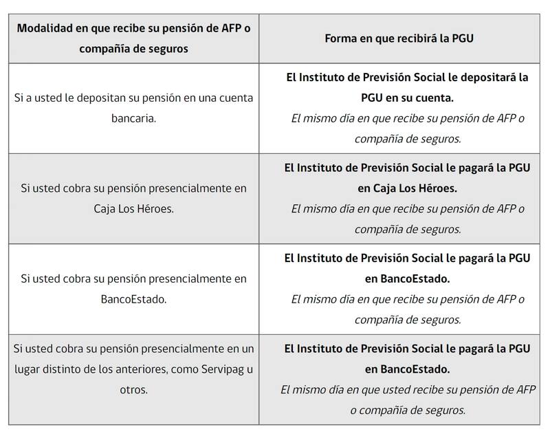 A partir de este mes, el Instituto de Previsión Social (IPS) se encargará de pagar la Pensión Garantizada Universal. Un cambio que no afectará a aquellos que reciben su dinero a través de la Caja Los Héroes o Banco Estado, pues podrán seguir recibiendo el pago en estas mismas instituciones el mismo día que la pensión de AFP o de la compañía de seguros.