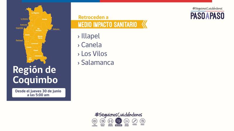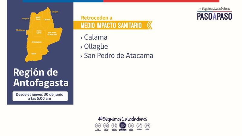 Son 7 comunas en todo Chile las que retroceden a la etapa de Medio Impacto Sanitario, entre las cuales se encuentran localidades de las regiones de Antofagasta y Coquimbo.