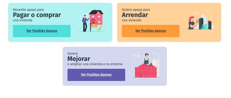 Puedes dar clic en cualquiera de las áreas de tu interés. Por ejemplo, si te interesa conocer los beneficios disponibles en el área de vivienda, tendrás que dar clic en el cuadro y te redireccionará a una nueva selección para afinar tu búsqueda. En este caso, las opciones se verán así: