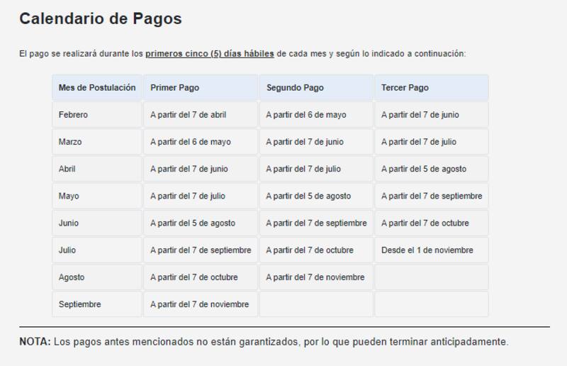 Esta semana se realizará el tercer pago para quienes postularon en febrero, el segundo para quienes lo hicieron en marzo y el primero para los beneficiarios de abril.
