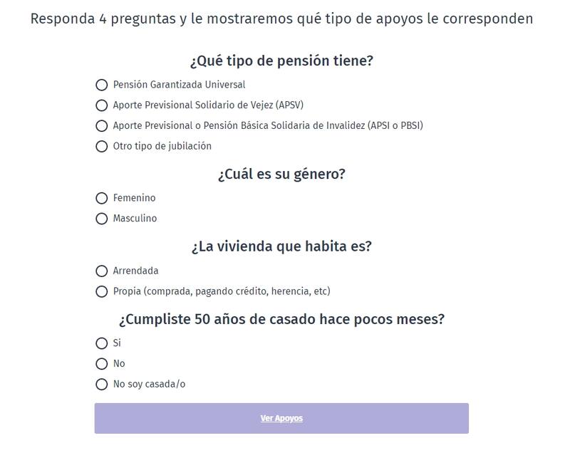 Al apretar en "Buscador de beneficios" el sitio te guiará a un cuestionario de ocho preguntas, donde la su mayoría son de selección, por lo que no demorarás más de cinco minutos en realizarlo.
