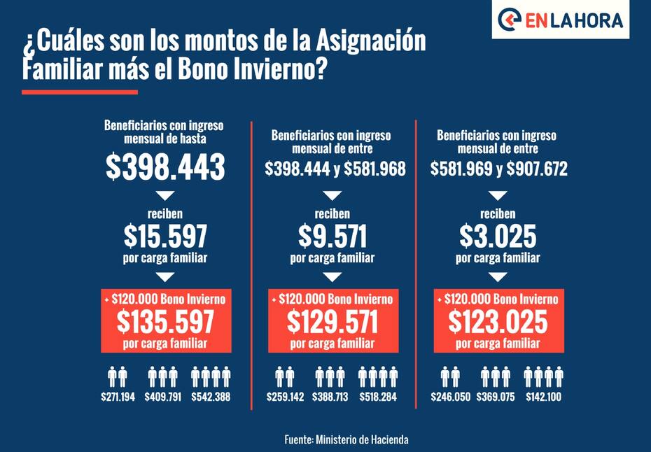 En cambio, si recibes el Bono Invierno en conjunto a la Asignación Familiar, entonces dependerá del ingreso mensual que reciba tu hogar. Te ilustramos también esta situación aquí: