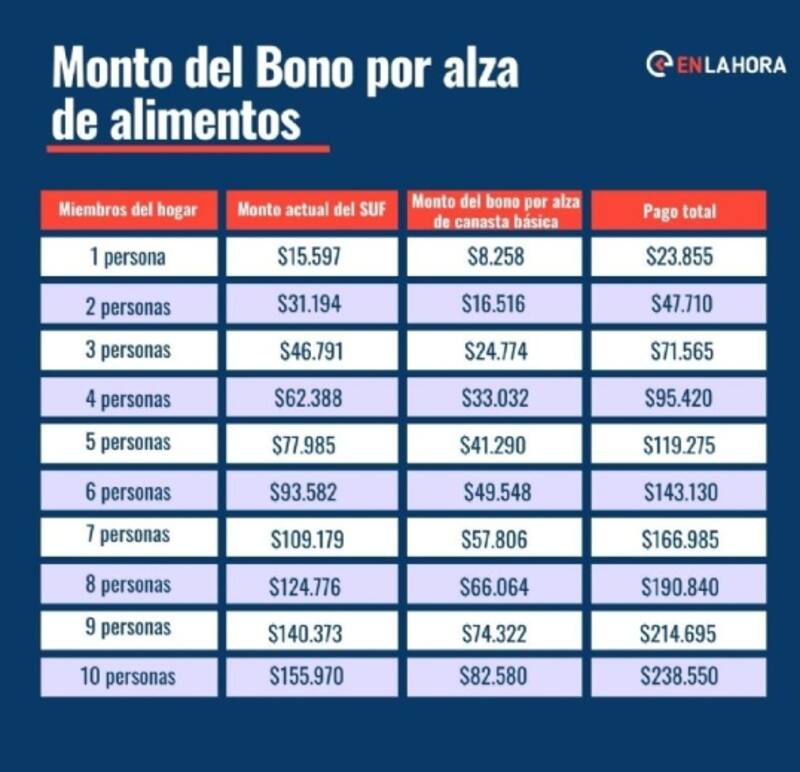 Revisa a continuación los montos del SUF junto al bono que podrán recibir las familias: