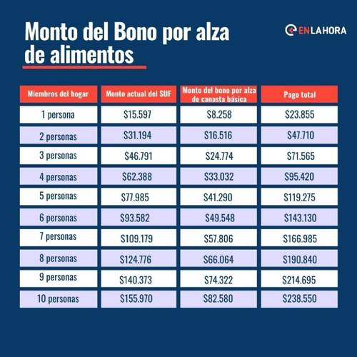 De esta forma, este beneficio se entrega junto a los pagos de las ayudas mencionadas anteriormente. Por ejemplo, el Subsidio Único Familiar se suma con el Bono Canasta Básica. Revisa aquí una tabla con los montos de pago a recibir por ambos aportes, dependiendo de tus cargas familiares: