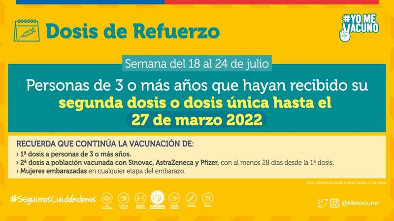 • Personas de 3 o más años que hayan recibido su segunda dosis o dosis única hasta el 27 de marzo de 2022.