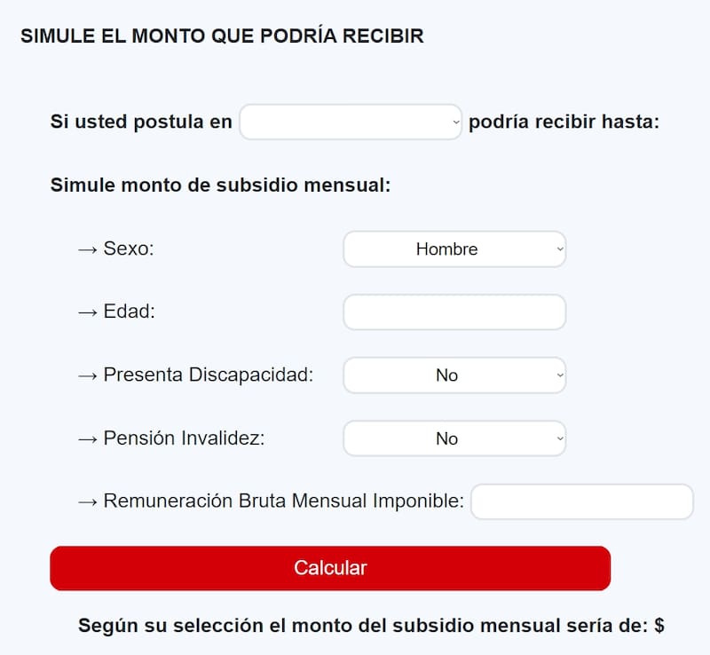 Allí, deberás completar los datos solicitados para que puedas ver el monto que se te entregará por este bono, en caso de salir seleccionado.
