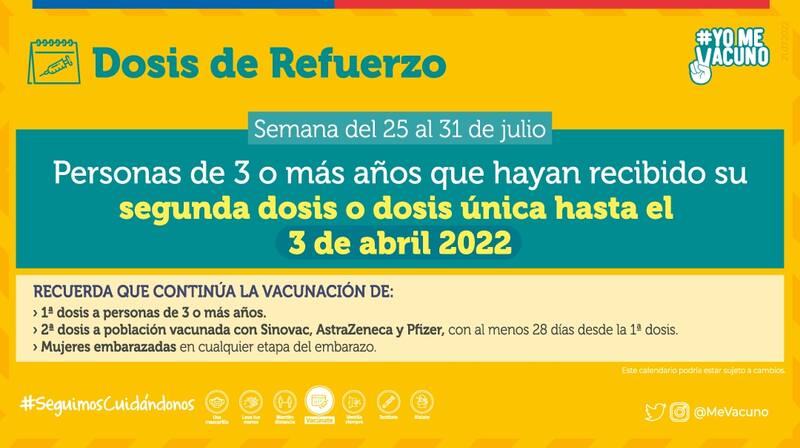 - Personas de 12 años o más que hayan recibido su dosis de refuerzo (tercera dosis) hasta el 3 de marzo de 2022.