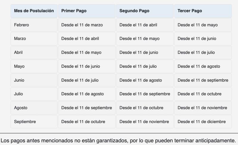 El primer pago de este beneficio es a partir del día 11 del mes siguiente a la postulación. Es decir, dependerá de la fecha en que el usuario postule al beneficio. De esta manera: