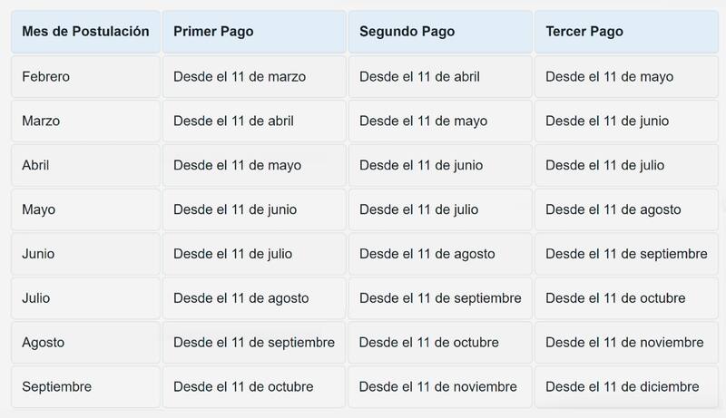 Para los postulantes de junio y los meses previos, el próximo pago será el día lunes 11 de julio. Para los postulantes de los siguientes meses, estas serán las primeras fechas de pago: