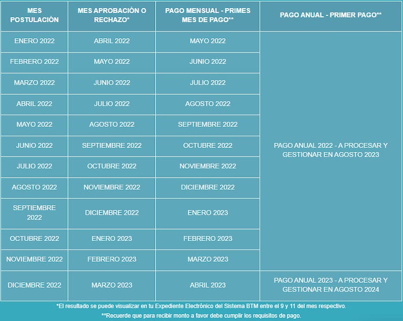 En caso de que hayas resultado beneficiada con el pago de este subsidio, este se efectuará cuatro meses después de recibir la aprobación de tu postulación. Los pagos, además, se realizan el último día de cada mes, a excepción de los meses de septiembre y diciembre.