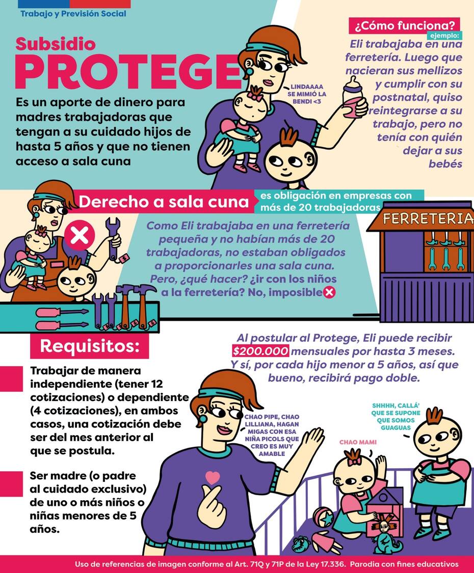 Deben estar trabajando ya sea de forma presencial o en modalidad de teletrabajo, a distancia o mixta, y no deben tener garantizado el derecho a sala cuna por parte de sus empleadores.
