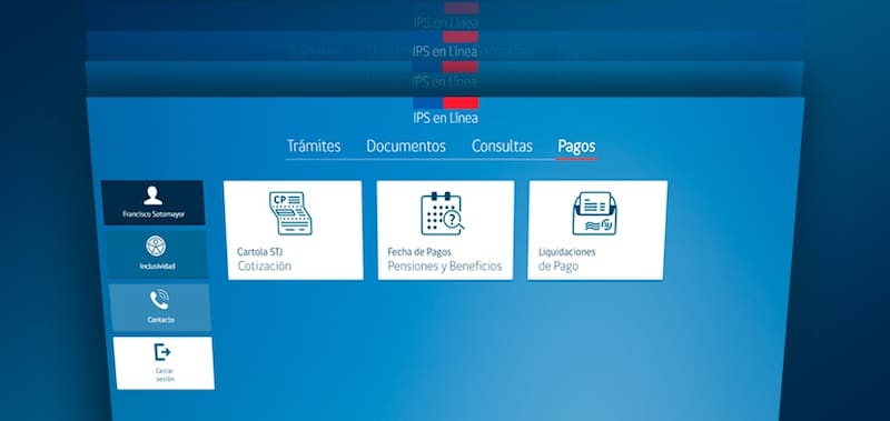 - Una vez que se identifique en el sistema, podrá acceder al la plataforma del IPS en Línea donde se verá la sección de trámites principalmente y los distintos apartados para navegar: documentos, consultas y pagos.
