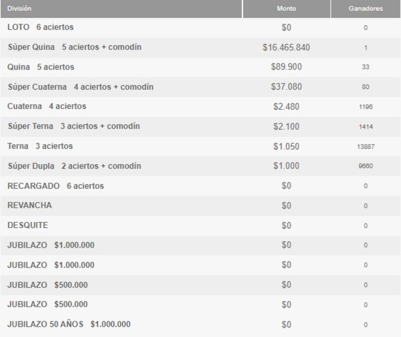 Sin embargo, en Súper Quina hubo 1 afortunado que se llevó $16.465.840. Además, miles de jugadores se llevaron algunos premios en las otras categorías, aunque de menores montos.