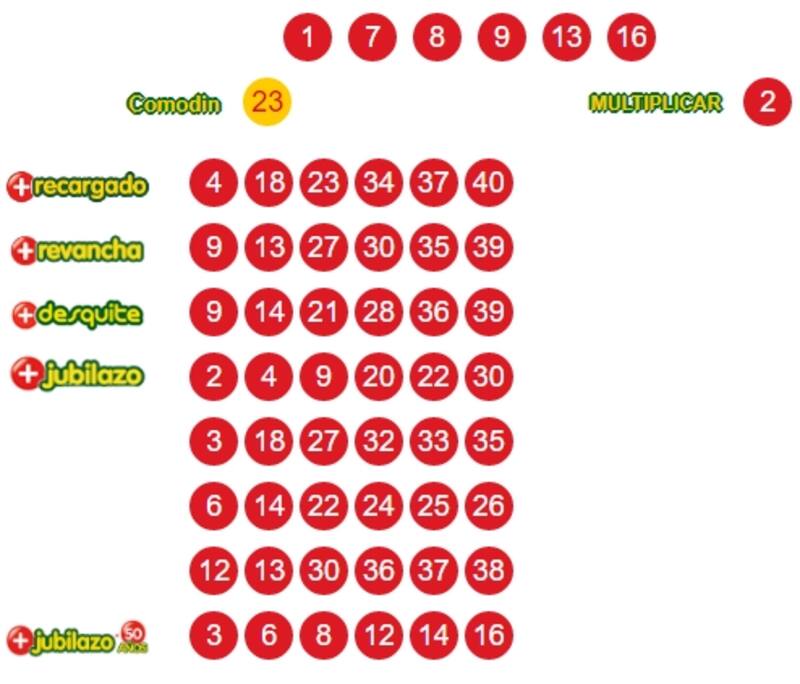 Números ganadores Loto: 1, 7, 8, 9, 13, 16.
