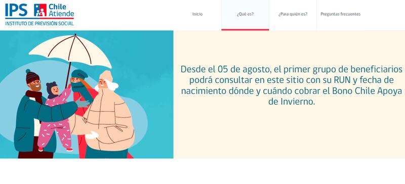 La página web es bonoinviernochileapoya.cl. No obstante, recuerda que si bien el sitio ya está funcionando, las consultas se pueden realizar a partir de este viernes 5 de agosto.