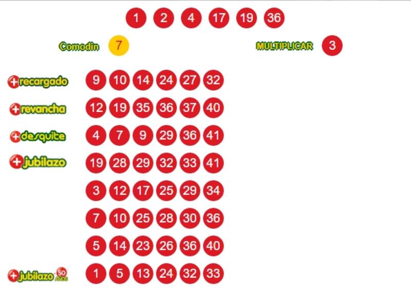Jubilazo: 19, 28, 29, 32, 33, 41 - 3, 12, 17, 25, 29, 34 - 7, 10, 25, 28, 30, 36 - 5, 14, 23, 26, 36, 40.