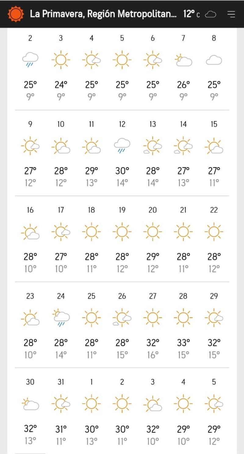 Si bien, los pronósticos del clima pueden variar de un día a otro, accuweather ya permite acceder al calendario climatológico para esta próxima primavera 2022. Y a continuación, te contamos cómo estará en clima primaveral en el gran Santiago, enfocándonos en el mes de octubre.