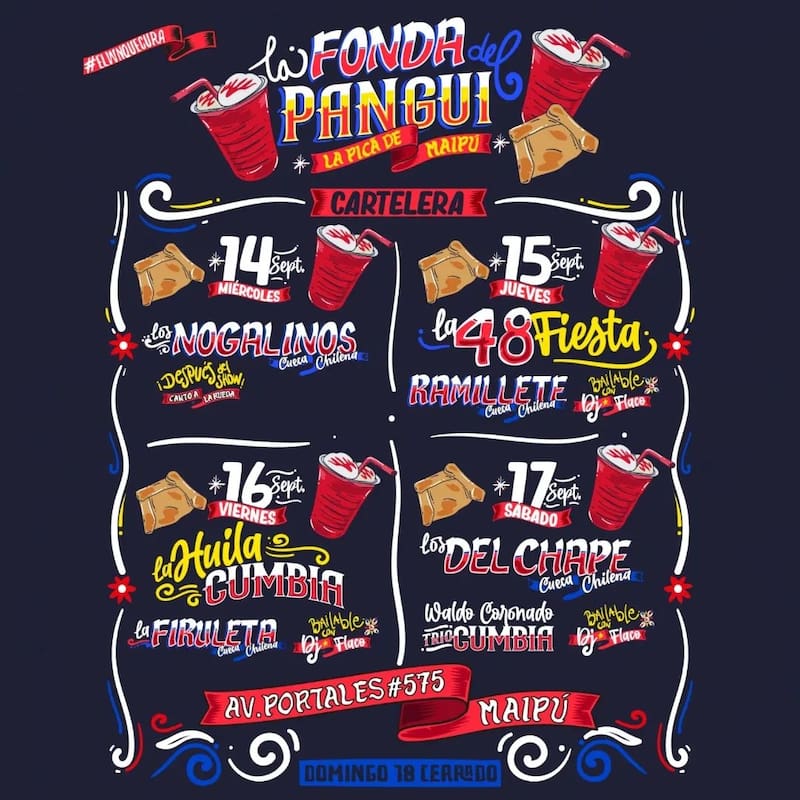En esta ocasión se realizará una fonda comunal en Maipú, por lo que un grupo de personas se ha organizado para no dejar pasar la oportunidad de festejar este 18 de septiembre, por lo que en el Bar Panguipulli se llevarán a cabo un par de actividades.