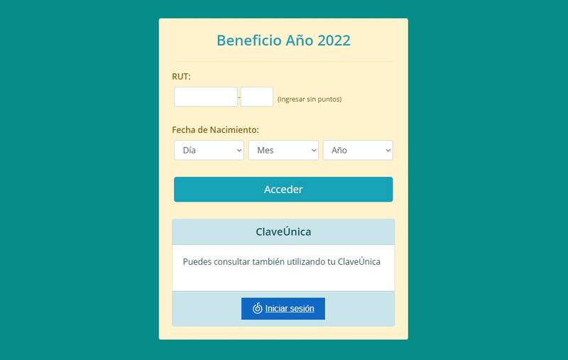 Completa los datos solicitados: RUT y fecha de nacimiento. También podrás ingresar con Clave Única.