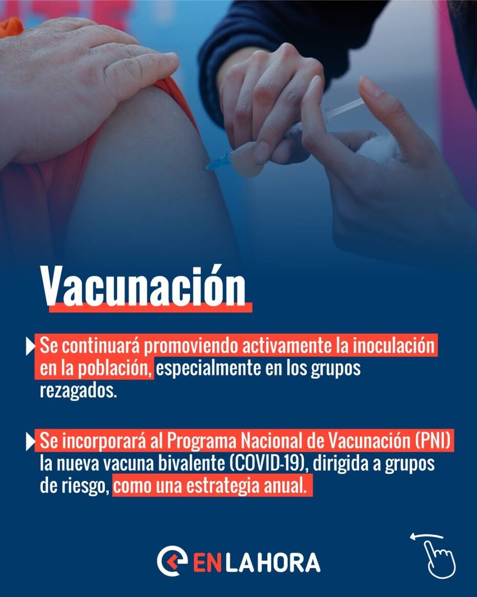 Dentro del punto de prensa que entregó la ministra de salud, Ximena Aguilera, en conjunto a los subsecretarios, se señaló la continuidad del proceso de vacunación, aunque a contar de ahora se llevará a cabo una vez al año para los grupos de riesgo, de la misma forma que la campaña de vacunación contra la Influenza.