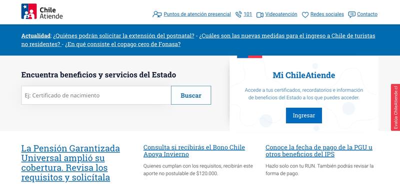 ChileAtiende es una plataforma del Instituto de Previsión Social (IPS) destinada a la ciudadanía la cual se encarga de entregar información y ayuda respecto a diversos trámites, programas y beneficios de diversas entidades públicas del Estado.