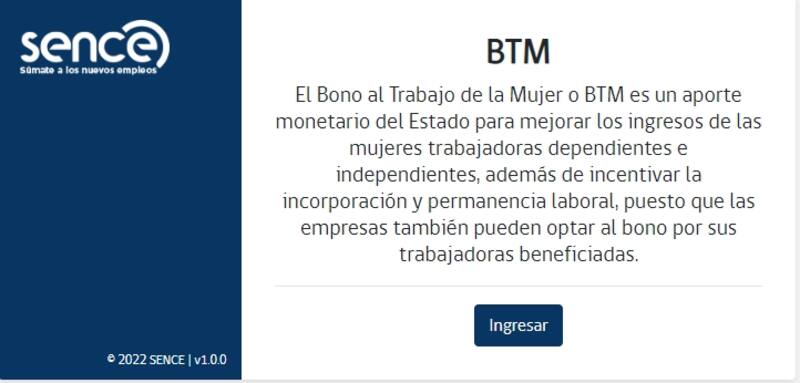 El Bono al Trabajo de la Mujer (BTM) es un aporte que se otorga a trabajadoras dependientes e independientes y que tengan entre 25 y 59 años de edad.