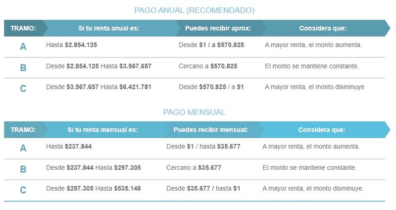 Tal como se mencionó anteriormente, el valor del bono dependerá del sueldo bruto que perciba la beneficiara y también la modalidad de pago de preferencia. Asimismo, se calcula en tres tramos.