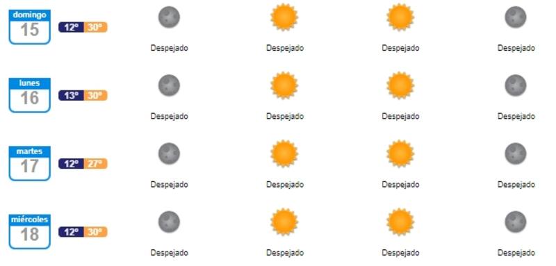 En relación a los siguientes días, la temperatura máxima en la Región Metropolitana será de 30 grados el lunes 16 de enero. Los otros días, en tanto, están entre los 27 y 30 grados y cielos despejados.