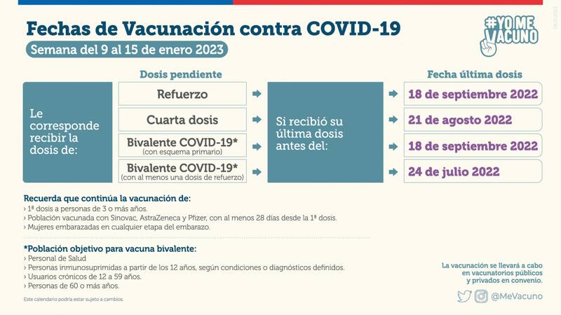 Cabe destacar que durante esta semana el Minsal anunció que la vacunación anual Covid-19 se extenderá para personas desde 50 años, a partir del próximo lunes 16 de enero.
