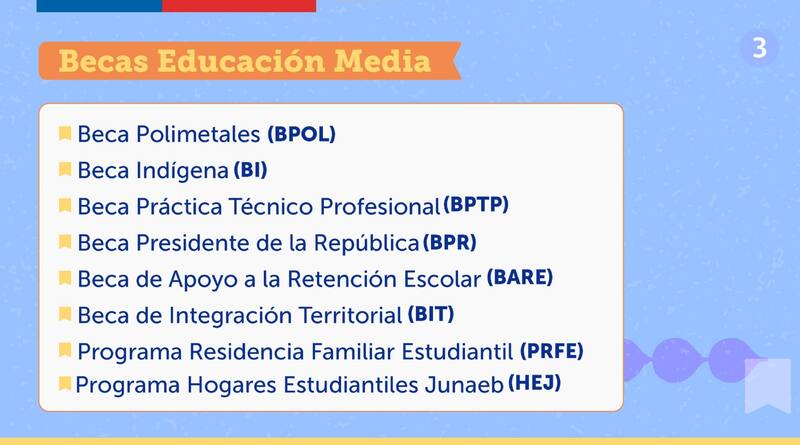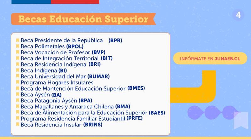 Revisa a continuación el listado de becas que entrega Junaeb por cada uno de los niveles educacionales: