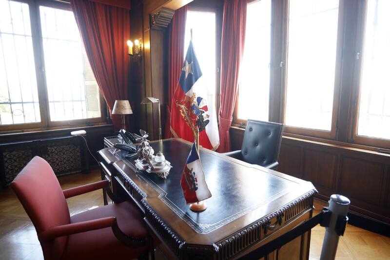En tanto, en este recorrido podrás visitar la entrada al palacio, la caminata al Hall de acceso, pasando por el living, el escritorio del Presidente, el comedor y terraza exterior para salir por el acceso izquierdo del palacio.