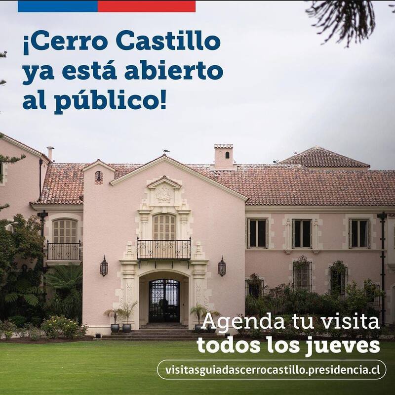 Las visitas al palacio presidencial de Cerro Castillo se llevarán a cabo todos los jueves de 15:00 a 16:00 horas y podrán ingresar 20 personas por grupo.