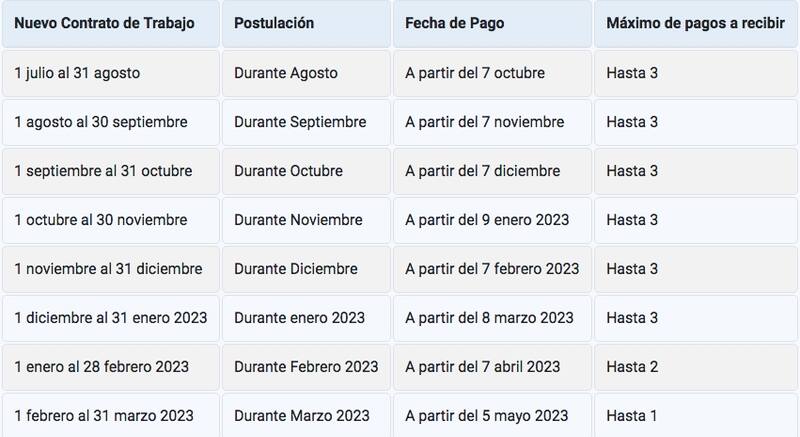 Este bono realiza 3 pagos y se extendió hasta el 31 de marzo del 2023, por lo que las últimas personas que podrán postular hasta el momento serán las que tengan su inicio de contrato de trabajo entre el 1 y 31 de marzo.
