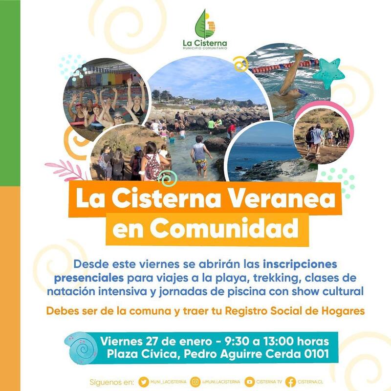 Este viernes 27 de enero, la Municipalidad de La Cisterna, en la Región Metropolitana, abre las inscripciones para diferentes panoramas de verano dirigidos a sus vecinas y vecinas.