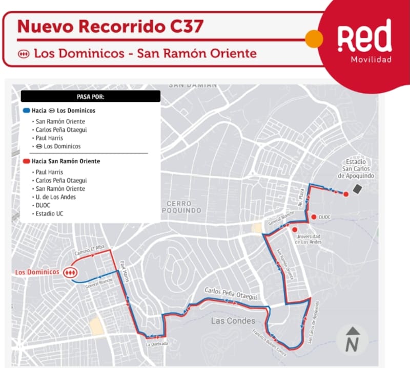 Nuevo servicio C37: Entrega nueva cobertura entre el sector de San Ramón Oriente y el Metro Los Dominicos. Este recorrido funcionará de lunes a viernes entre 05:30 y 22:40 hrs. Sábados entre 06:00 y 22:40 hrs. Domingos y festivos entre 06:30 y 22:30 hrs.