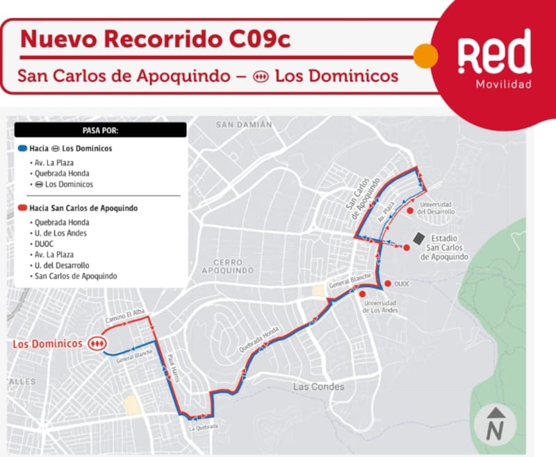 Nuevo recorrido C09c: Se incorpora al sistema para ofrecer una nueva alternativa de viaje entre San Carlos de Apoquindo y el Metro Los Dominicos, tramo de alta demanda de usuarias y usuarios. Este servicio funcionará en los horarios punta: de lunes a viernes entre 05:30 y 08:45 hrs. y entre 16:30 y 20:15 hrs. y los días sábado entre 06:30 y 09:50 hrs.