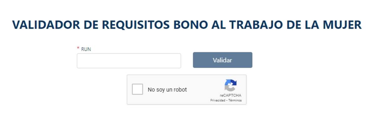 Para conocer si cumplen con los requisitos para obtener el o los pagos del Bono al Trabajo de la Mujer, las trabajadoras podrán ingresar al validador de requisitos de Sence para el Bono al Trabajo de la Mujer. Una vez dentro, deberán digitar su RUT y seleccionar en "Validar".