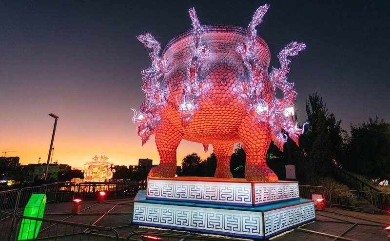 Además, destaca el Trípode de 9 Dragones que consiste en una gigantesca figura hecha con más de 30 mil utensilios de porcelana que demuestran el supremo poder imperial.