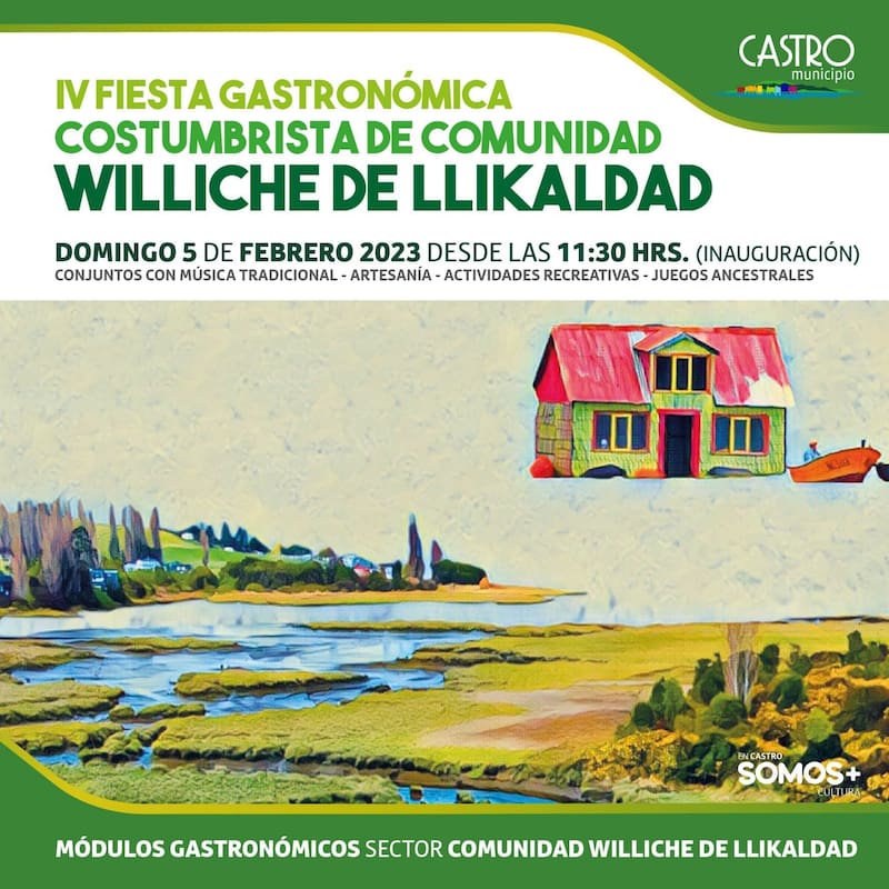 Este domingo 5 de febrero también se desarrollará otro festival costumbrista en Castro. La IV fiesta gastronómica y costumbrista de la comunidad Williche de Llikaldad que comenzará a las 11:30 horas en los módulos gastronómicos de la misma comunidad.