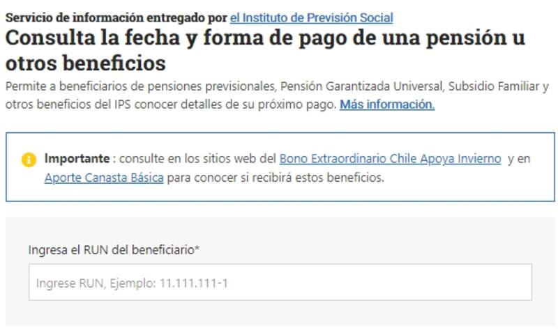 Sin embargo, Chile Atiende en conjunto con el Instituto de Previsión Social (IPS) habilitaron una página web para que las personas puedan conocer cuándo recibirán su aporte.