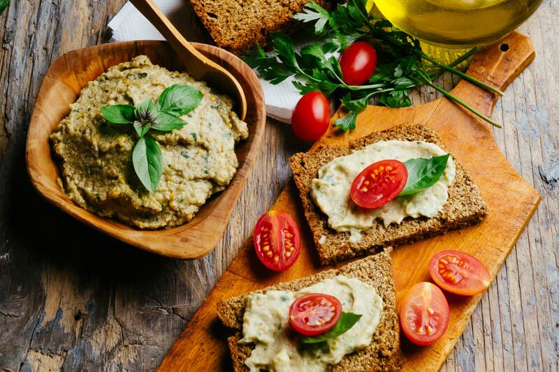 7. Desayuno mediterráneo: Sirve una tabla con panes planos, hummus casero, aceitunas, tomates cherry, pepino en rodajas, queso feta y huevos cocidos. Acompaña con té de menta.