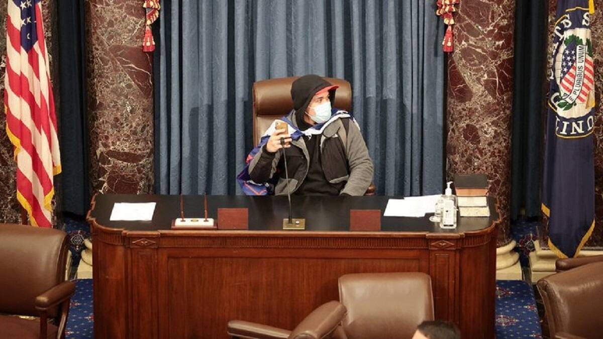 Esta primera imagen tampoco es un meme, pero muestra a uno de los manifestantes sentado en la silla del Presidente del Senado de los EEUU.