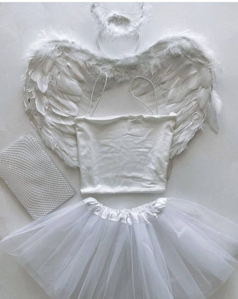 Para armar el disfraz solo necesitas un vestido de color blanco, este puede ser largo o corto, y debes complementarlo con accesorios de color dorado, tanto como pulseras, cintillo o corona y unos zapatos de color claro.